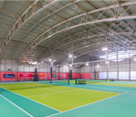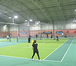 - LED照明で見やすく、冷暖房完備、足腰にやさしいカーペットコートのインドアテニスコートです。